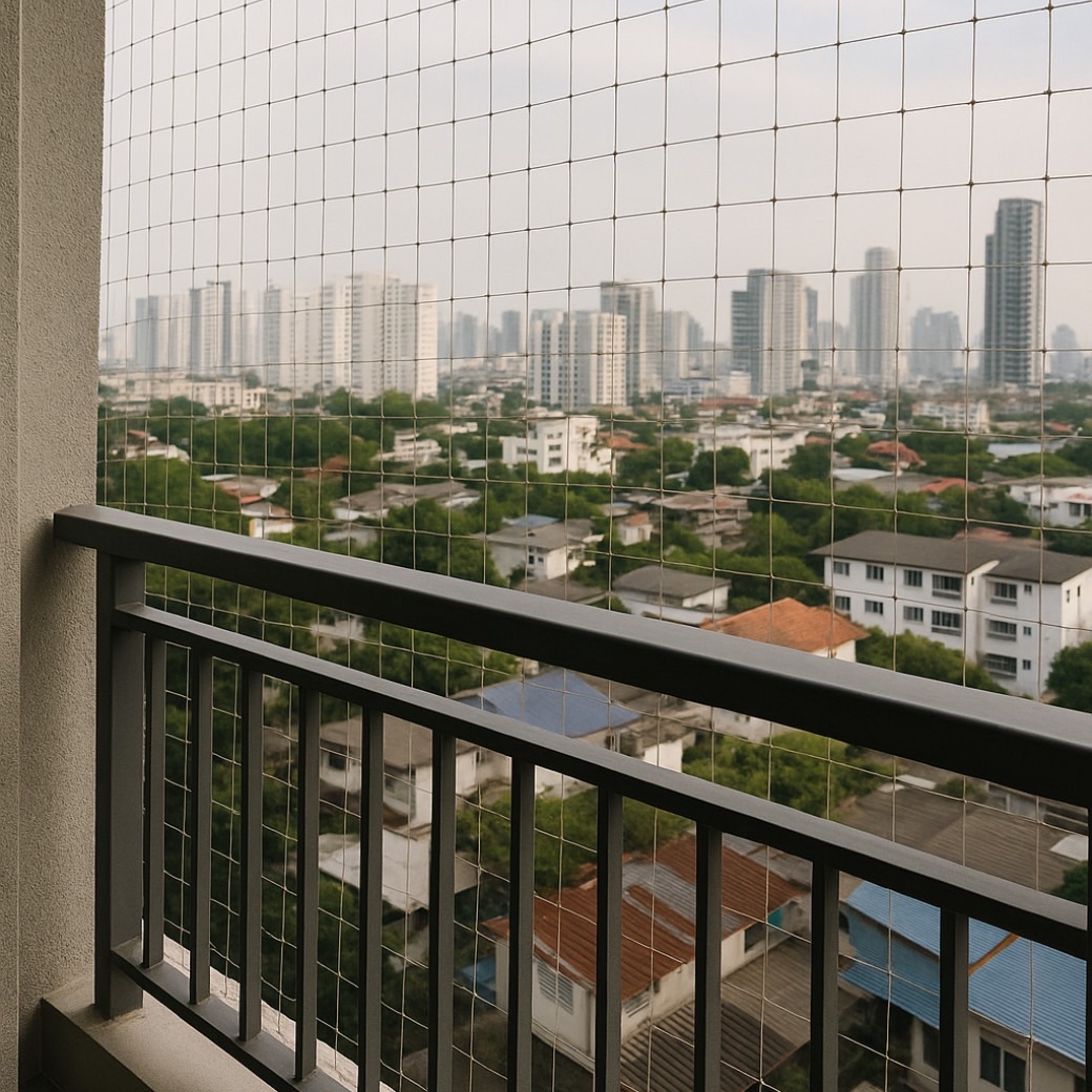 ทำความสะอาดพื้นและผนังระเบียง พร้อมบริการติดตั้งตาข่ายกันนกเพื่อป้องกันการกลับมารบกวน